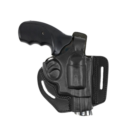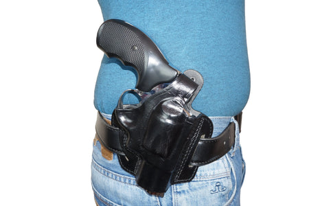 - Premium genuine cowhide leather belt retention holster excellent for concealed carry or open carry.